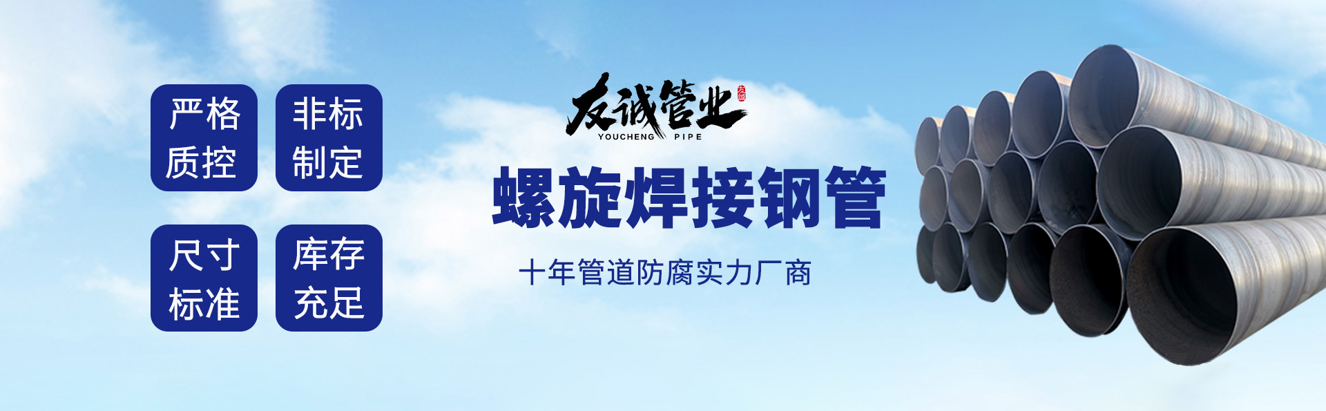 滄州友誠管業(yè)有限公司是一家專業(yè)從事生產(chǎn)防腐涂塑管道及管件于一體的大型企業(yè)。公司注冊資金8600萬元,位于中國管道生產(chǎn)基地—河北鹽山縣,近靠京滬高速、榮烏高速、黃石高速30公里,高鐵滄州西站40公里,天津國際機場、濟南遙墻機場150公里,為客戶來訪及業(yè)務(wù)發(fā)展提供了便利的交通條件。 鋼管系列:螺旋鋼管、無縫鋼管、ERW直縫焊管、JCOE埋弧焊直縫鋼管、熱鍍鋅鋼管。 涂塑系列:內(nèi)外涂塑鋼管、涂塑復(fù)合鋼…… 了解更多